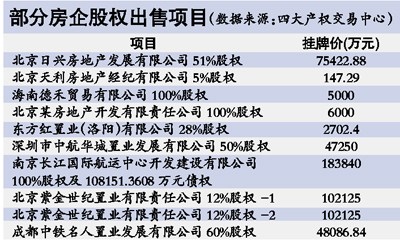 记者了解到,由于资金链日益紧张,不少中小房企转让股权债权、抛售房产、在建项目等实物资产,“断腕”求生。据中原地产研究中心统计,2011年1月至12月上半月,股权交易市场共出现491宗房地产行业股权及资产交易(不包含关联交易),涉及金额超过1300亿元。